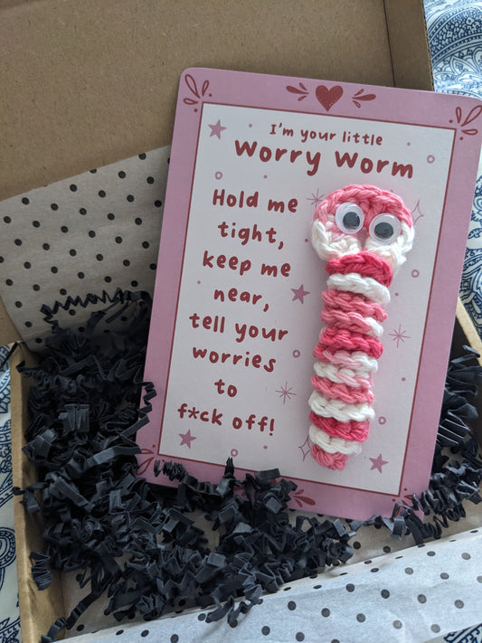 Pink Worry Worm FOR ADULTS, Sweary Sarcastic cotton crochet worm