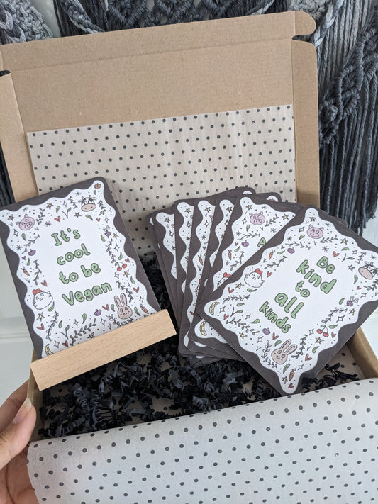 Vegan Affirmation Cards, Be kind, Animal Doodles, Vegan Home Gift