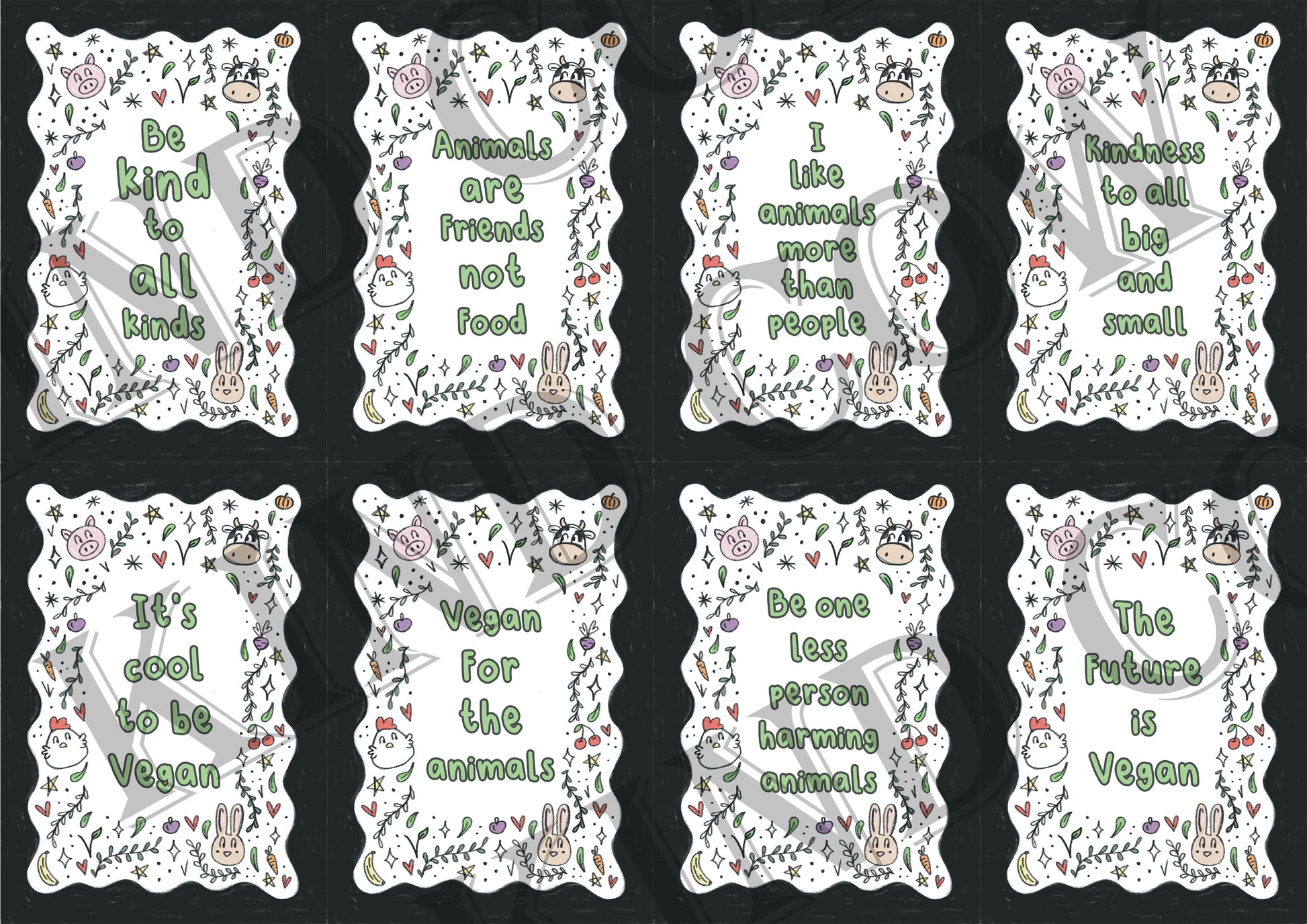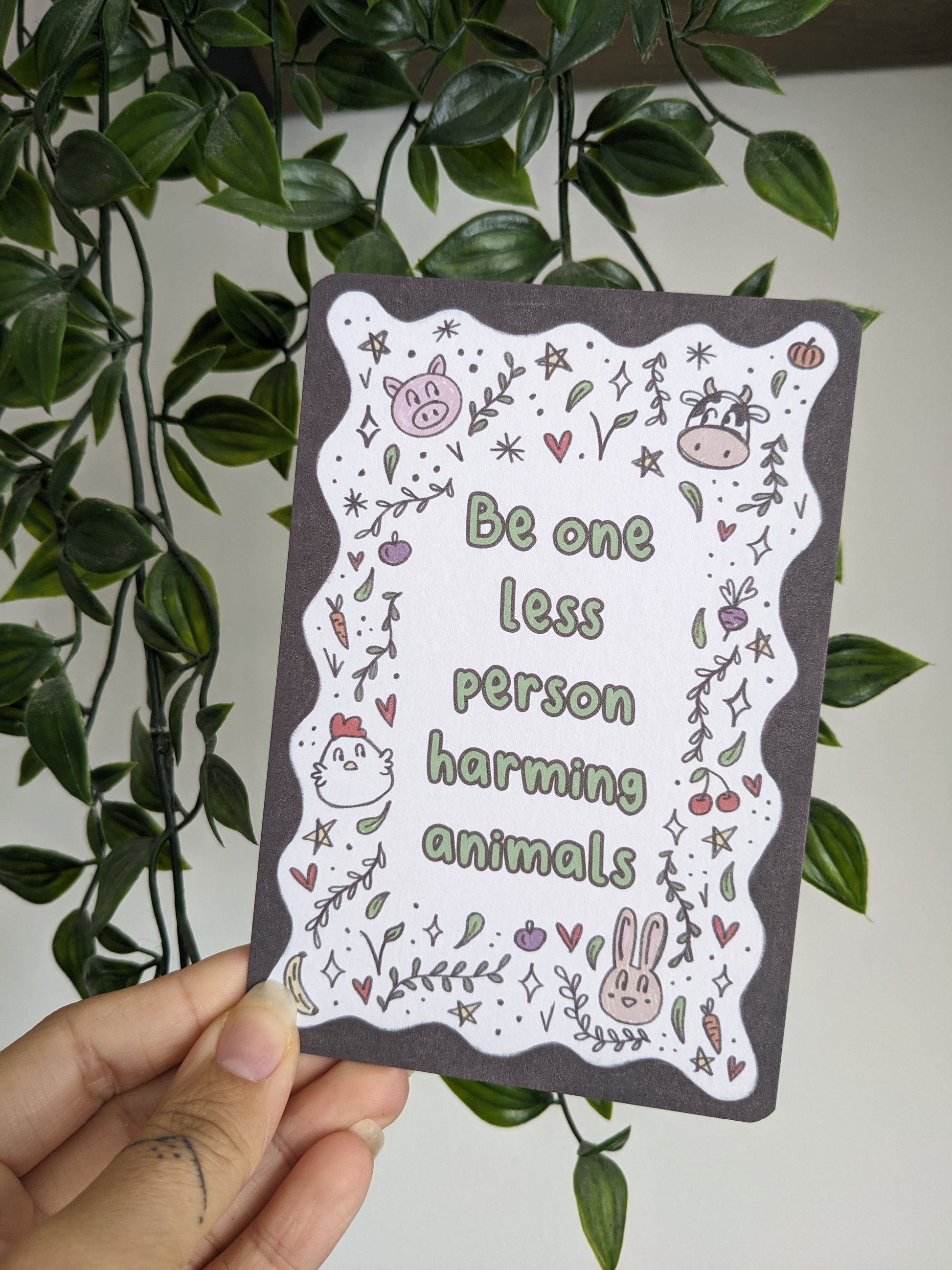 Vegan Affirmation Cards, Be kind, Animal Doodles, Vegan Home Gift